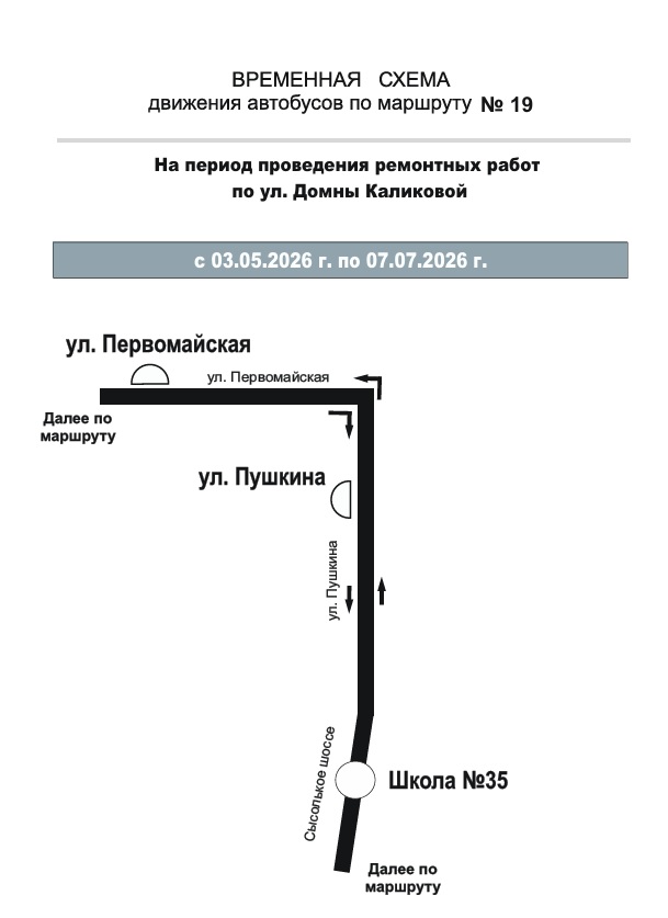 Администрация Сыктывкара информирует о временном изменении движения автобусов по маршрутам №№1м, 7 и 19, 28