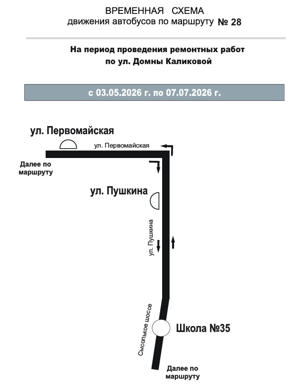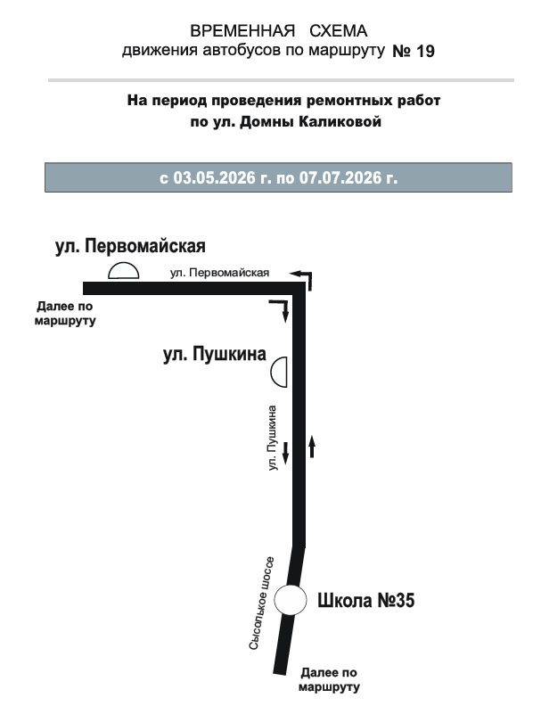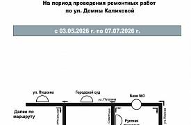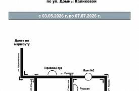 С 3 мая по 7 июля в связи с проведением ремонтных работ будет перекрыто движение автомобильного транспорта по ул. Домны Каликовой от ул. Южной до ул. Интернациональной.