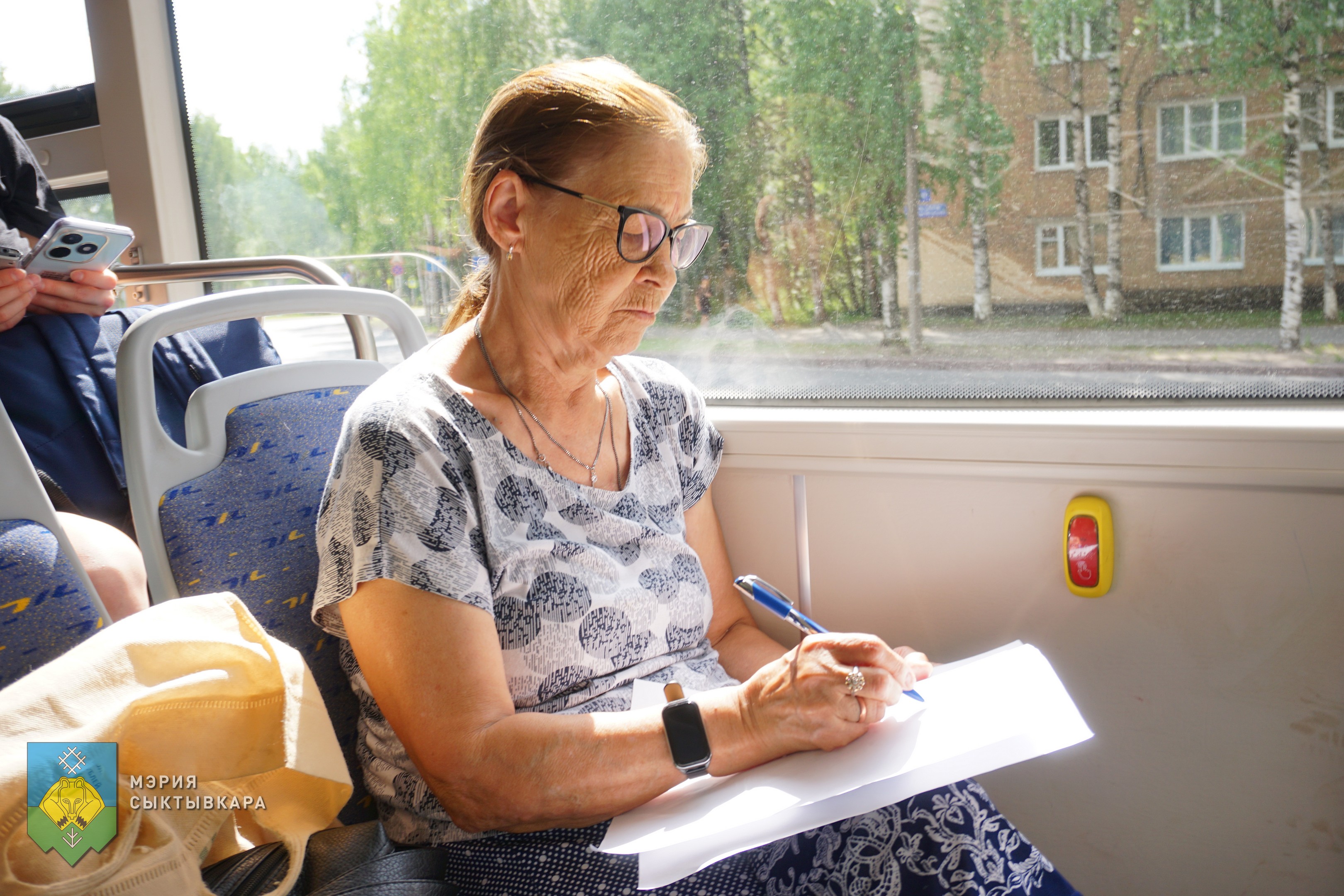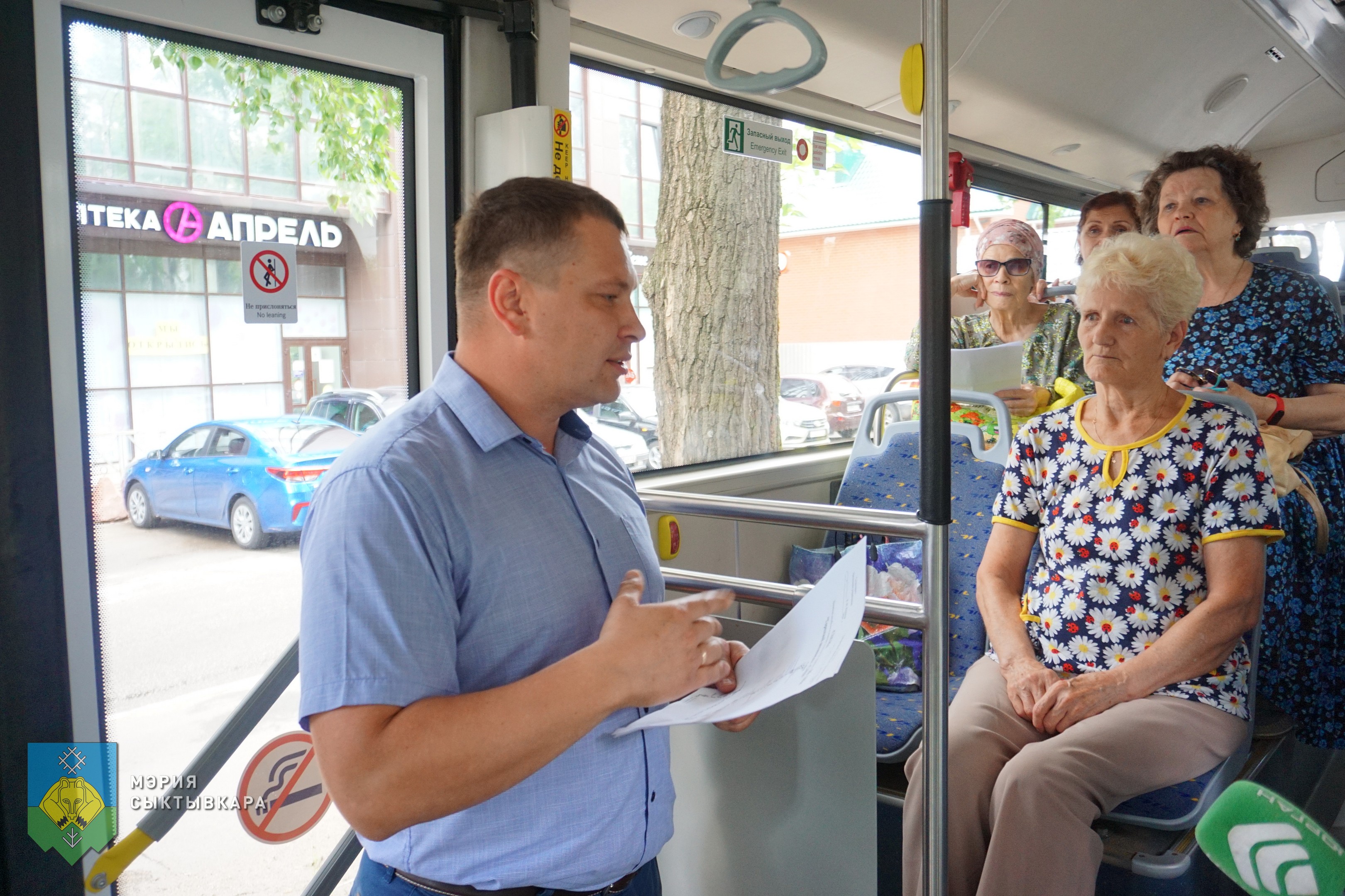 По ходу движения автобуса у общественников возникали вопросы касаемо остановок в районе Аэропорта, по улице Энгельса, Октябрьскому проспекту. На все вопросы были даны разъяснения.