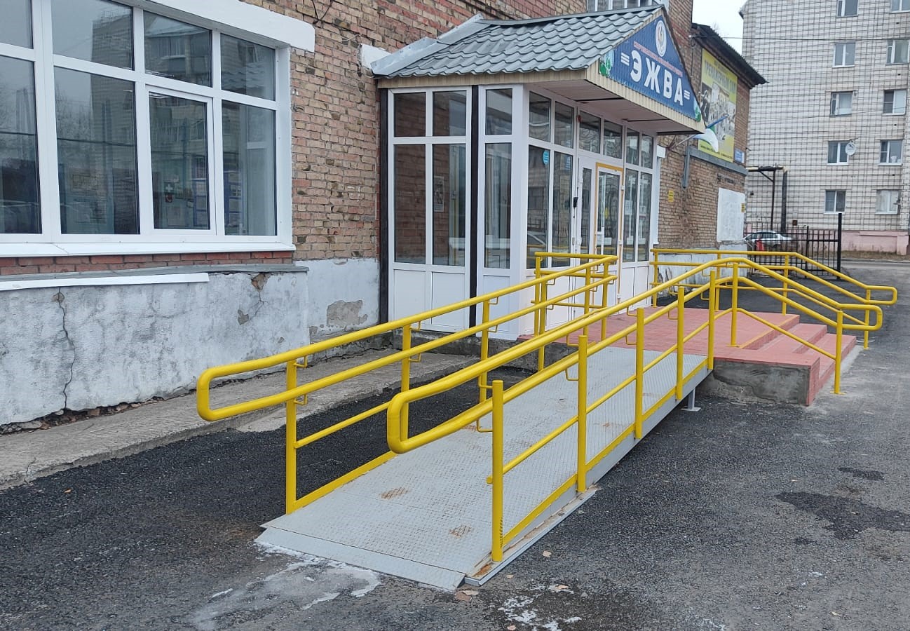 Еще один проект – по повышению уровня доступности для людей с инвалидностью - реализован в спортивной школой олимпийского резерва «Эжва». Выполнены работы по расширению входной группы с заменой дверных блоков, увеличению верхней лестничной площадки с учетом требований для маломобильных горожан, установлены пандус и поручни.