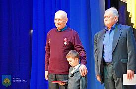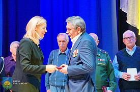 На сцену вышли герои, их наградили общественными медалями «40 лет ликвидации аварии на Чернобыльской АЭС». Медаль была выпущена специально для участников событий, познавших сложности борьбы с невидимым врагом.